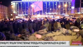 Телеканал «Дождь» показал в эфире как в Екатеринбурге с песнями и танцам провожали очередную порцию добровольцев на Донбасс. Торжественные проводы роты добровольцев из пятидесяти человек напоминают ритуальный танец древних племен с однообразны