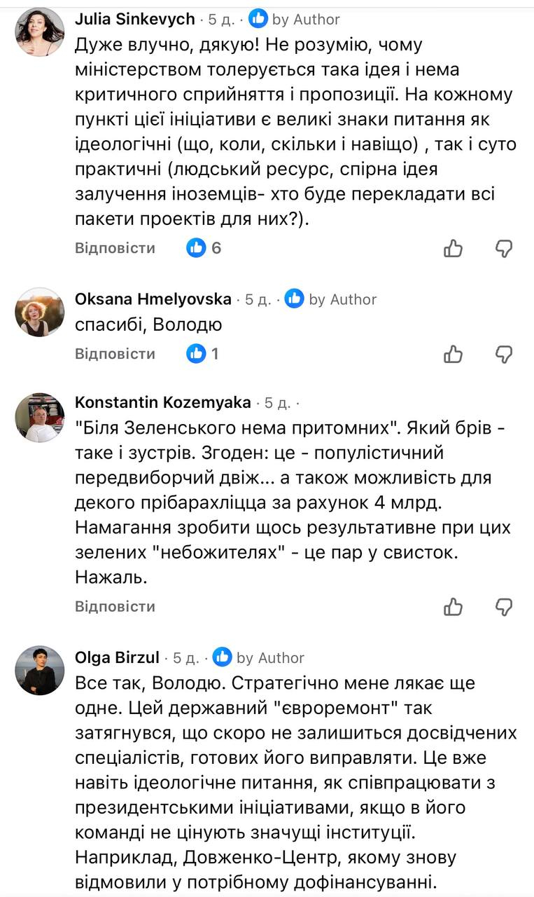Кількість лайків на цьому дописі від шанованих людей є доволі показовою, аби продовжувати фіксувати несприйняття цієї ідеї. Точніше, сприйняття її як винятково популістської та гігантоманської.