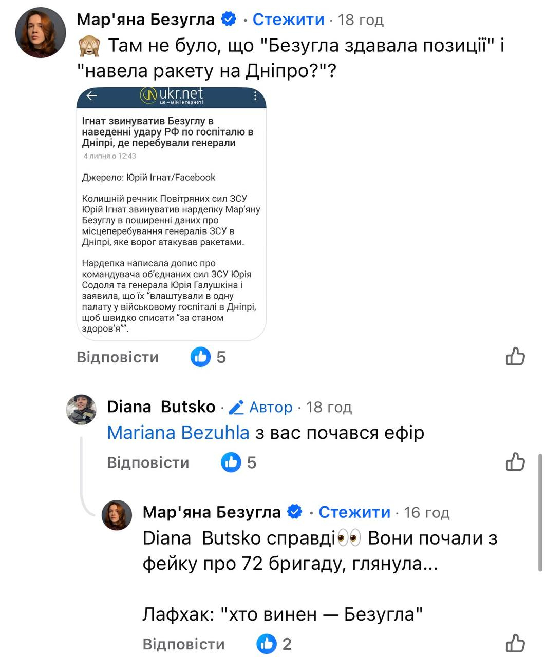 А також Мар'яна Безугла, яку автори шоу звинуватили в генеруванні фейків.