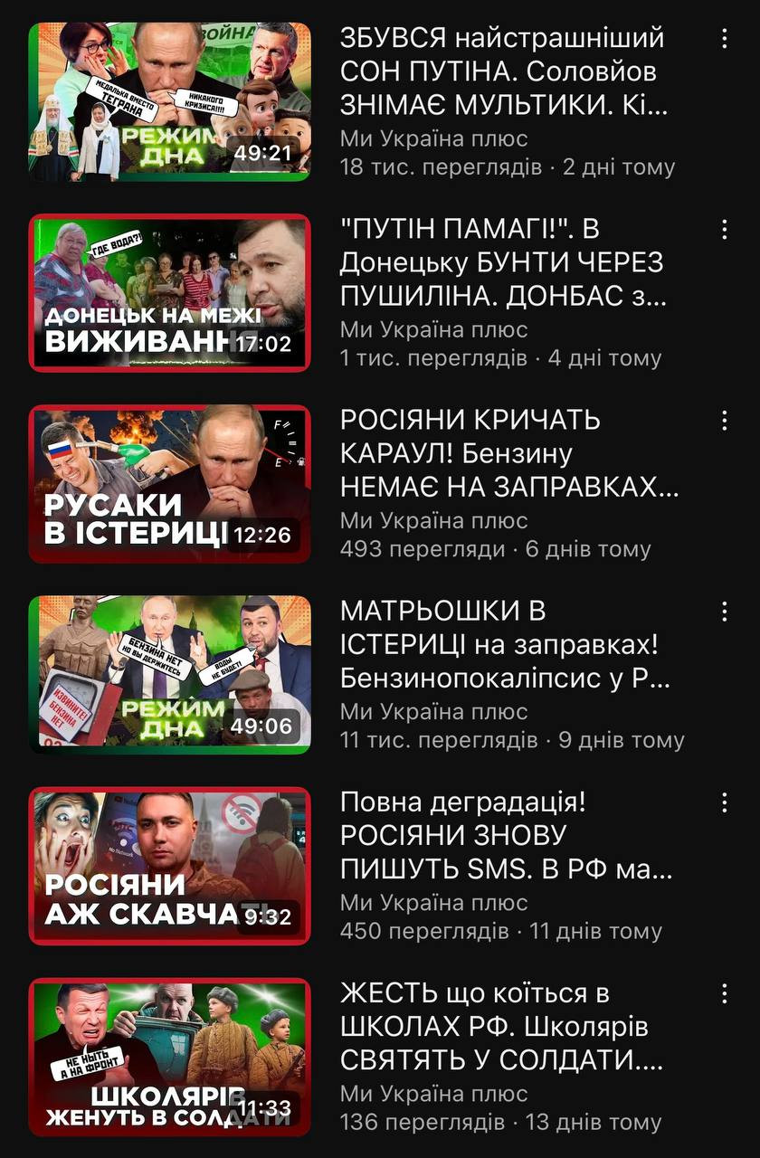 Тим часом ютуб каналу «Ми — Україна+»: