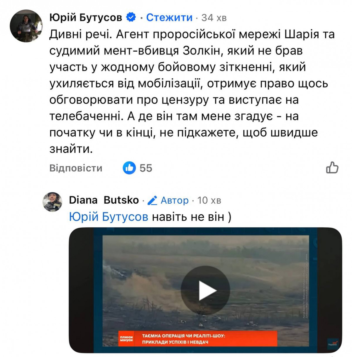 У коменти прийшов один із членів антиконтрнаступального угруповання Юрій Бутусов та завдав удару у відповідь.