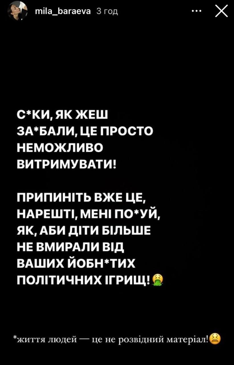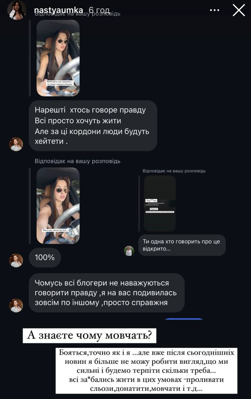 Настю Умку (її скрин останній) навіть викликали на розмову до СБУ. Принаймні, вона так казала у сториз. Здається, це і була така показова історія. Утім навіть Володимир Золкін визнає, що все це можна трактувати як ниття, а не розповсюдження фейків чи іншу небезпечну діяльність. Як на мене, дати цьому раду вповні може СБУ, без усяких додаткових законів. Власне, для контролю медіа також є достатньо регуляторів. Не кажучи вже про самоцензуру, якої колеги домовилися дотримуватися на початку війни, тим паче повномасштабної.