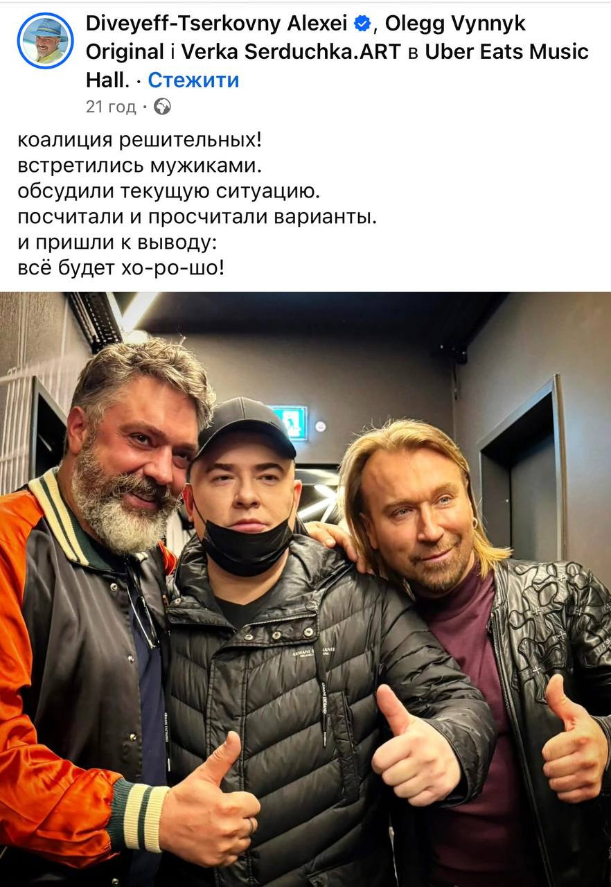 І ось — будь ласка. На сторіночці Олексія Дівєєва-Церковного з’являється фотка такого тріо: