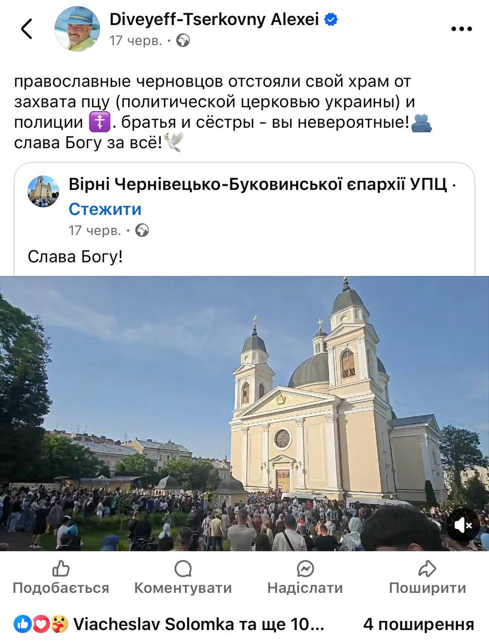 А ось коли почалося повномасштабне вторгнення, то Дівєєв-Церковний спочатку теж «кудись зник», а потім «знайшовся». У 2023 році він отримав трішки згадок у медіа через свій коментар до допису Марійки Бурмаки.