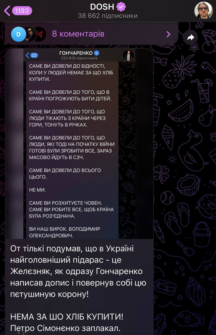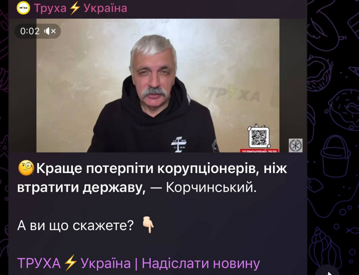 Телеграм-помийка «Труха» обходиться без такої експресії, але там витягли на світ божий Дмитра Корчинського.