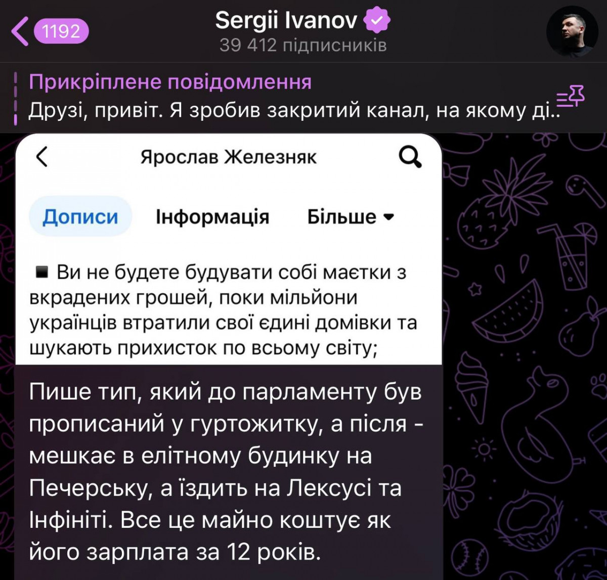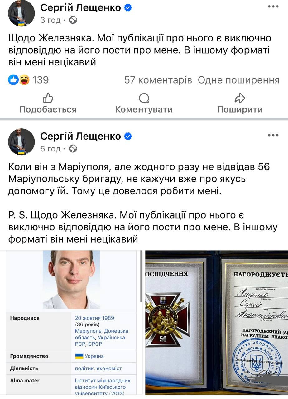 Сергій Лещенко теж завдає удару у відповідь Железняку, але з дисклеймером. Щоб люди не подумали, що він йому цікавий. Сподіваюся, Сергій буде це приписувати в кожному дописі про Ярослава, як російські іноагенти.