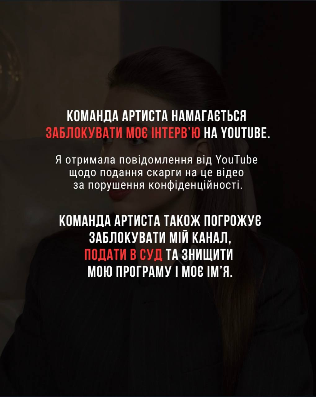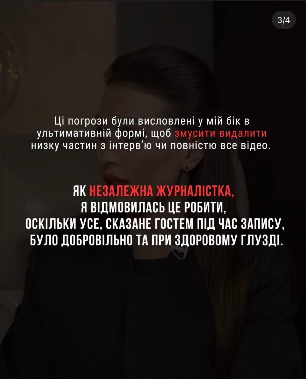 Переписку вже почитайте в дописі. Погрозами блогерка називає вимоги видалити інтерв’ю, а якщо ні, то буде суд.