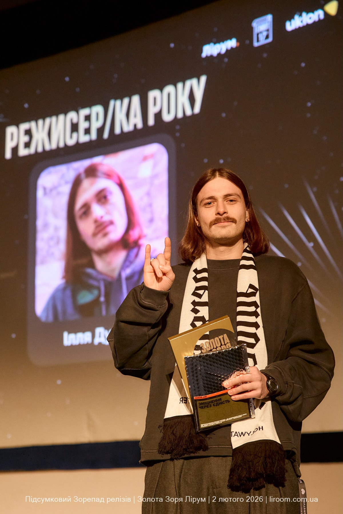Це вже вдруге. Голосували не за конкретне відео, а за вплив на галузь загалом. А, забула написати: голосує редакція «Ліруму» та читачі (70 на 30). Так ось, Дуцика я вважаю нині найцікавішим українським режисером музичних відео. Він хоч і намагається бути різноплановим, але впізнаваний авторський вайб у його роботах точно є і доволі нетривіальний. Одна з його тем — насильство, і його Іллі вдається дуже добре передати.