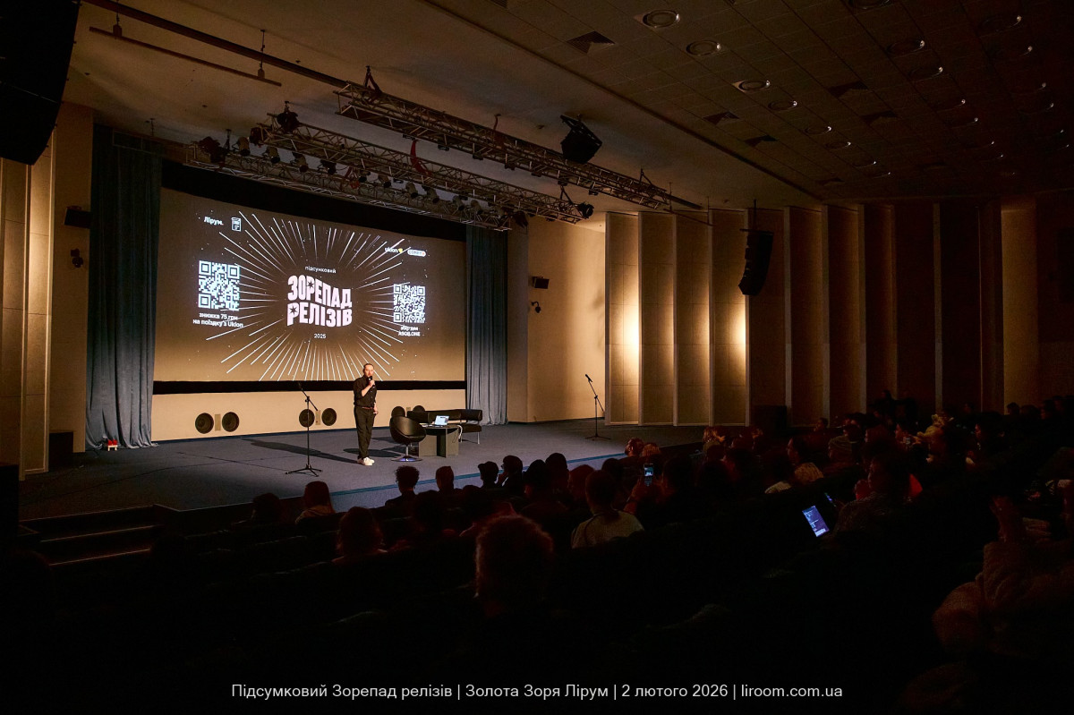 Відбувалося все в Українському домі в максимально лаконічному форматі: зібралися, зайшли до зали, сіли. На сцені — екран, стіл з ноутом та крісло, на якому сидить головред «Ліруму» Алекс Бондаренко і, власне, починає підбивати підсумки. Далі — вручають нагороди. І в кінці, після невеликої паузи, показують кліпи, від яких кров з очей та чудовий настрій приходять одночасно.