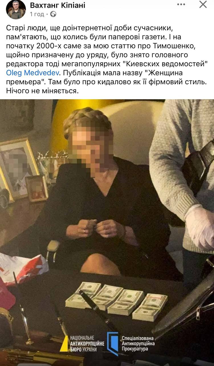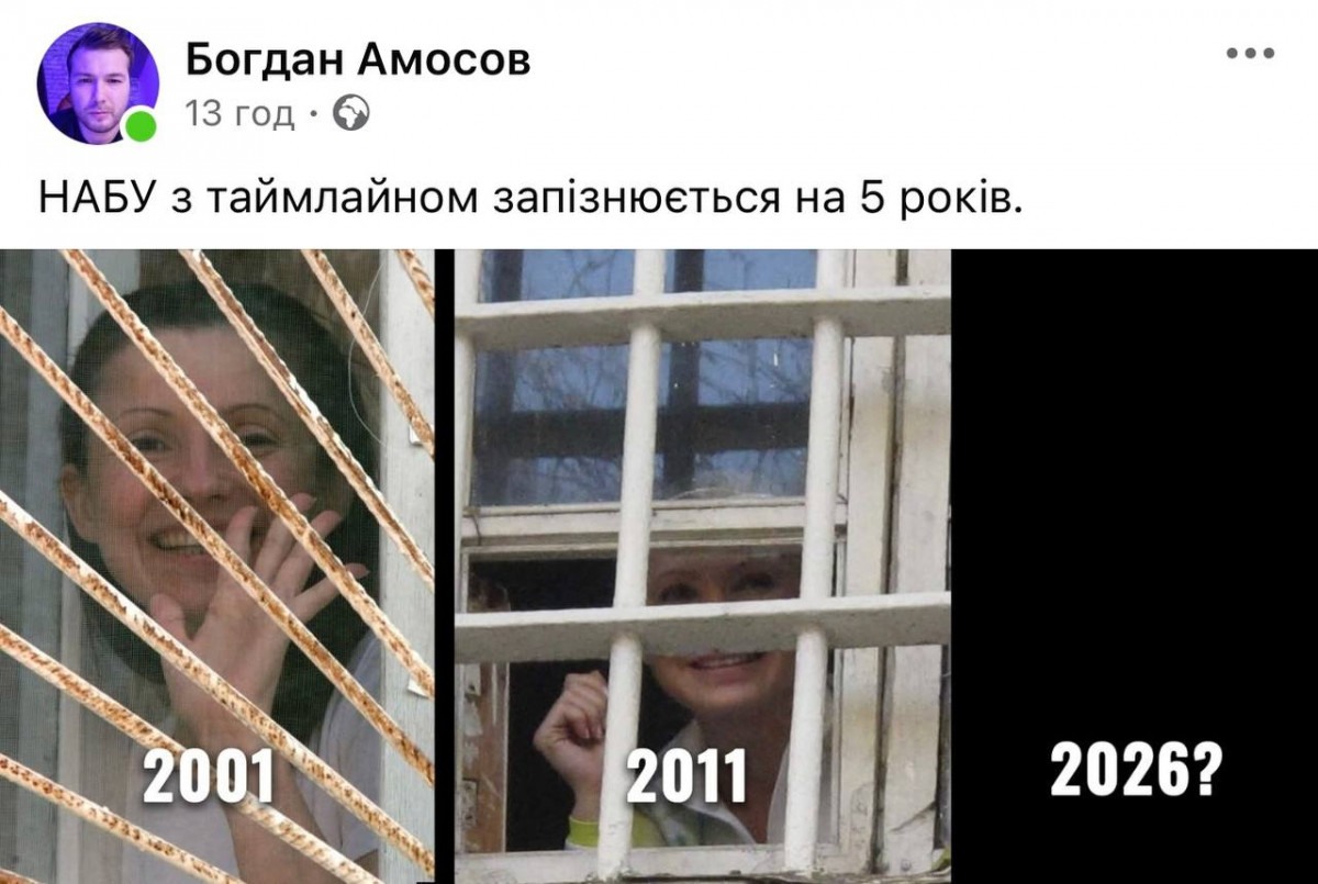 Напередодні ввечері, коли з'явилася новина про те, що НАБУ і САП викрили Юлію Тимошенко на пропонуванні хабарів нардепам, колега в робочому чатику написав, мовляв, готуймося до завтрашньої зливи мемів. Ага, канєшно. Злива, здається, почалася буквально за кілька секунд після появи цієї новини.
