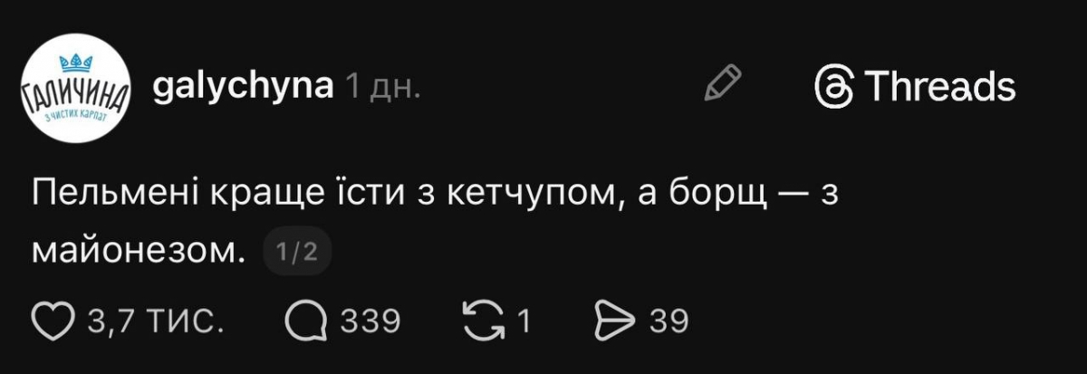 СММ-ники «Галичини» теж вирішили взятися за народні тригери і замахнулися на святе — сметану. Точніше, посміли давати такі обурливі поради. Дякую, хоч до дерунів гірчицю не запропонували. Але, звісно, всі одразу викупили цей жарт, бо бренд топить за цей продукт активніше, ніж мама вашої Антоніни, яка вважає, що зі сметаною треба їсти майже все. І відверто не розуміє, чому деякі люди вдаються до безглуздого підліткового епатажу, вважаючи, що хтось колись дозволяв їсти голубці без неї.