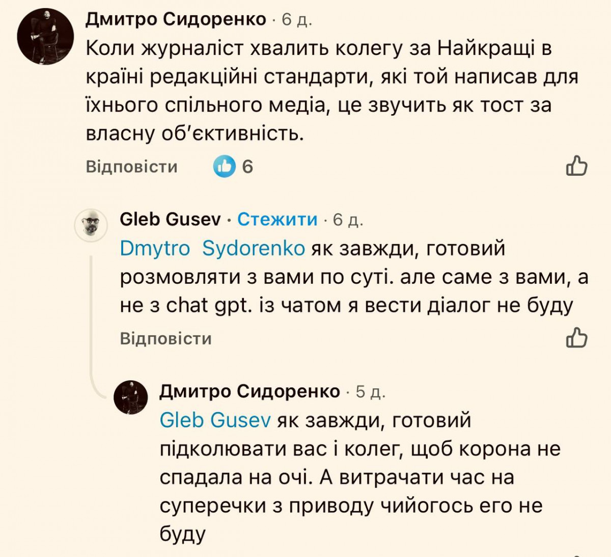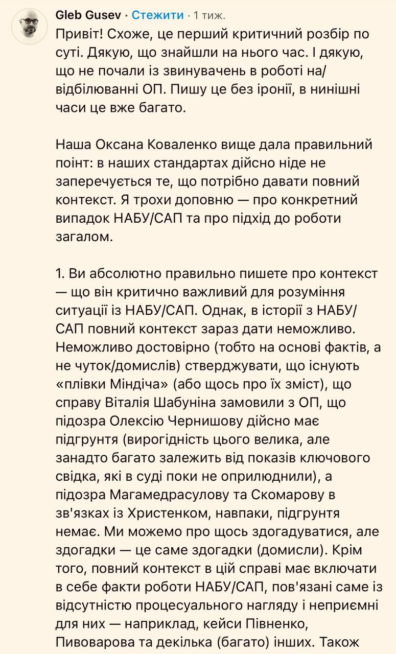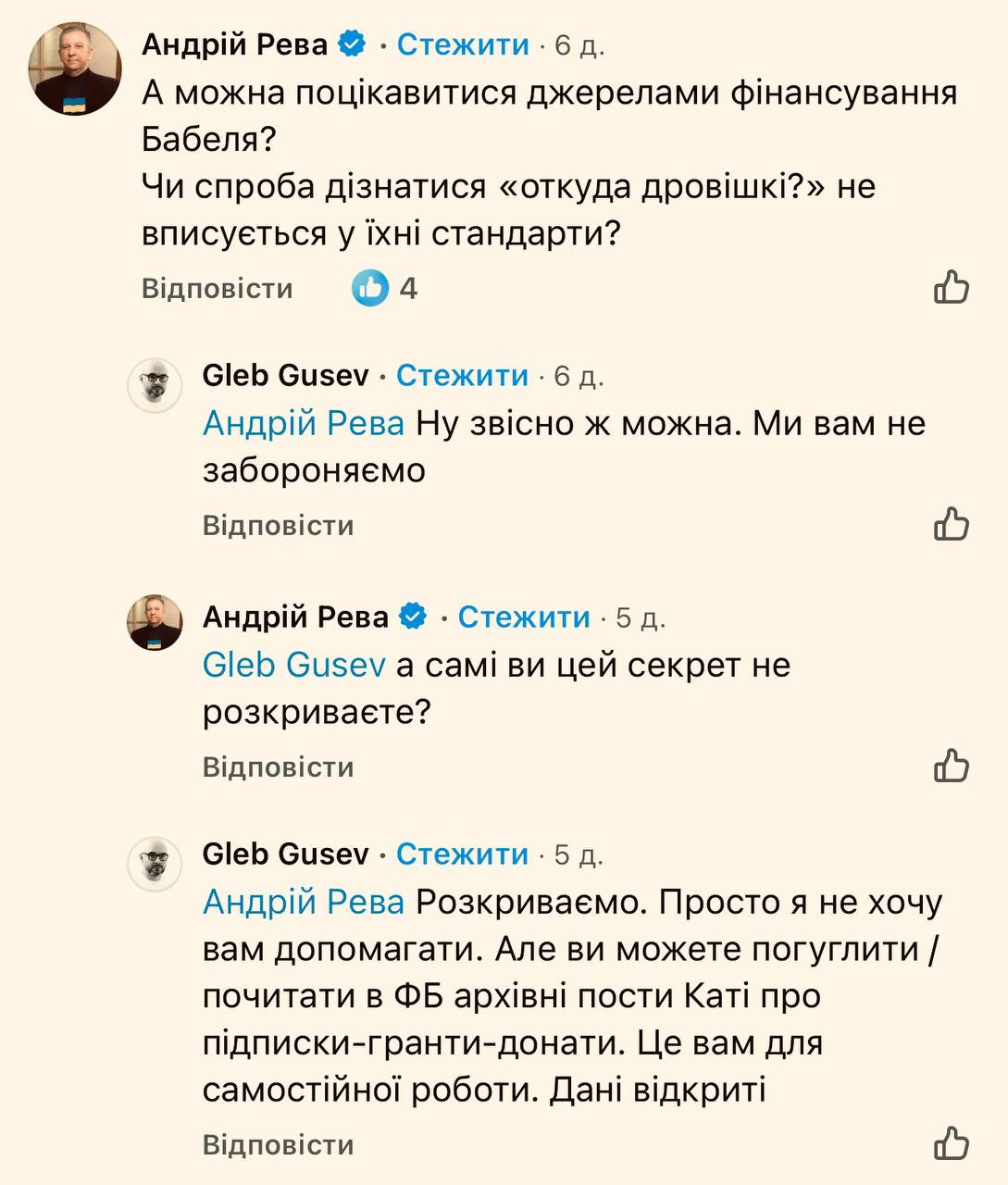 А ось що написав у коментах заступник головної редакторки «Бабеля» Гліб Гусєв: