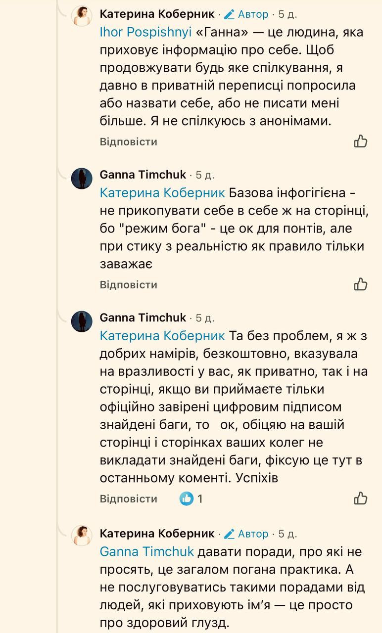 Ну що, достатньо контексту? Перейдімо тоді, нарешті, до відповідей. Ось що пише в коментах Катерина Коберник: